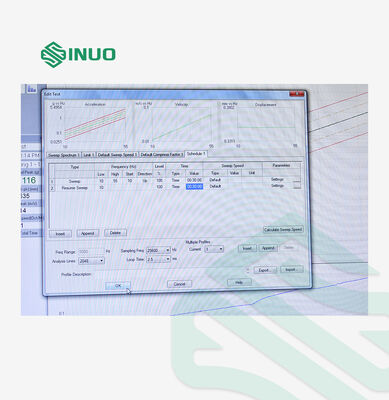 | Capacidades del software | Interfaz de operación en inglés, análisis en el dominio del tiempo y la frecuencia, fuente de señal, análisis de barrido de frecuencia sinusoidal, generación automática de informes de prueba WORD, visualización y almacenamiento de datos, configuración de parámetros de prueba y funciones de análisis |