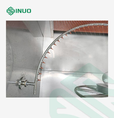 Equipped with a drip mechanism, oscillating spray system, turntable, and intelligent control cabinet, the chamber delivers uniform and repeatable test results. The turntable supports adjustable height and 15° inclination for IPX2 testing, while a built-in water filter ensures smooth operation without nozzle blockage.